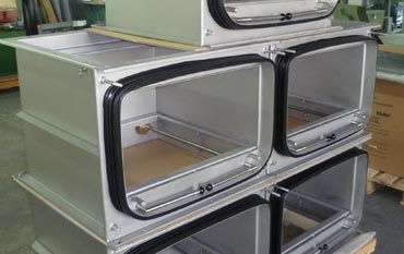 Fertigung aus Stahlblech (pulverbeschichtet) oder Edelstahl (glasperlgestrahlt 200 ym)